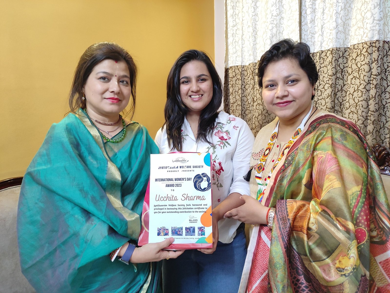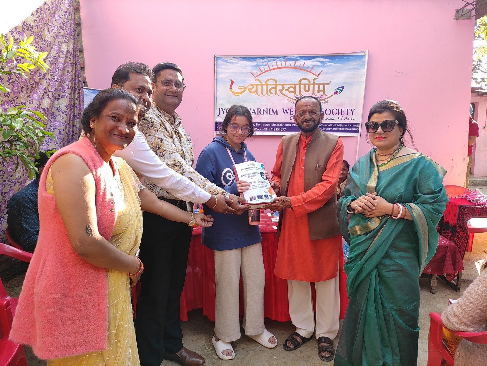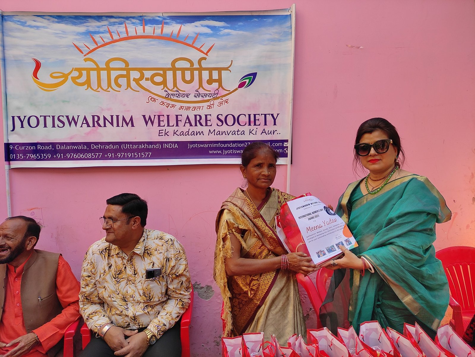 6 मार्च 2023, ज्योतिस्वर्णिम वेलफेयर सोसाइटी की पूरी टीम कुसुम विहार आंगनवाड़ी में एकत्रित हुई। सम्मान समारोह में सभी को सम्मान पत्र व उपहार प्रदान किए गए। श्री अजय शर्मा (मंडल अध्यक्ष), श्री शशिभूषण जोशी (उपाध्यक्ष), श्री मनोज दीवान (मंडल मंत्री), श्री राजपाल सिंह पयाल (पार्षद), श्री गौरव अग्रवाल (मसूरी अध्यक्ष), ज्योति जी (प्रेसिडेंट – ज्योतिस्वर्णिम वेलफेयर सोसाइटी), स्वर्णिम जी आदि की गरिमामई उपस्थिति ने समारोह को नए आयाम दिए। सम्मान समारोह में मीना यादव, वैजन्ती माला(धर्मपुर विधानसभा नगर मण्डल महिला मोर्चा अध्यक्ष), सीमा शर्मा, प्रभा सकलानी, कुसुम शर्मा, अनीता राठौर, वंदना बर्थवाल, उचिता शर्मा (एंजल), रेखा चुड़ासना, शकुंतला इष्टवाल जी को सम्मानित किया गया। कार्यक्रम का संचालन सोनल गर्ग व विवेक शर्मा ने किया।