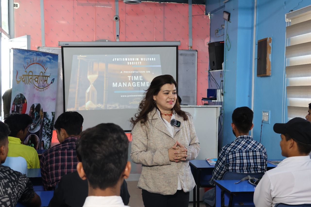 Time management leads to increase in efficiency, effectiveness and productivity. Jyotiswarnim Welfare Society conducted a seminar at AusSkill International Hotel School (AIHS) explaining the importance of Time and it’s effective management. Students were benefited by the detailed knowledge delivered by our experts. We are dedicated and pledged to deliver best of the knowledge and experience to the young generation.
